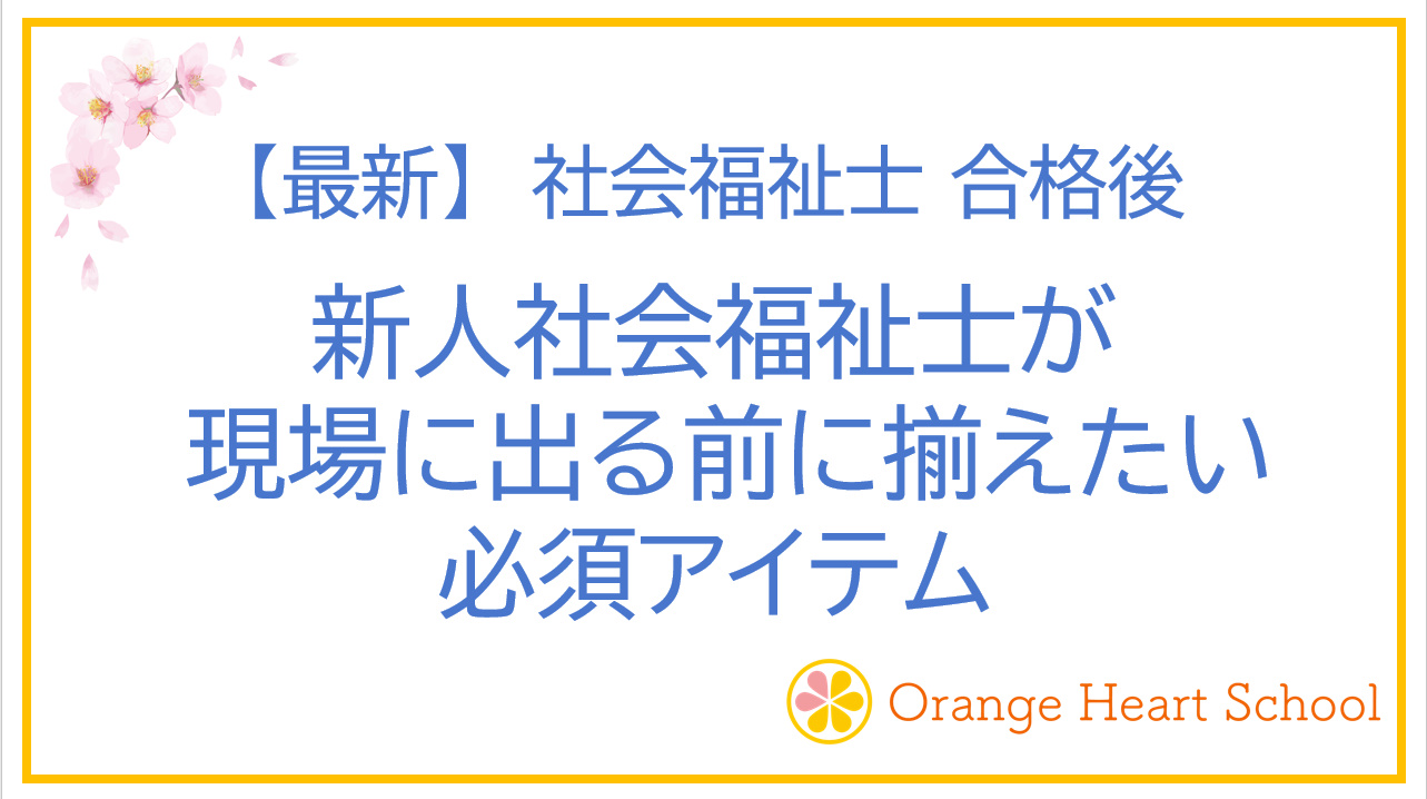ARCHIVES 2026年 【社会福祉士 合格後】新人社会福祉士が「現場に出る前に揃えるべき必須アイテム」5選 2026.03.18 社会福祉士試験対策 オレンジハートスクール 福祉系資格のオレンジハートスクール 【祝・合格!】介護福祉士合格後の手続き完全ガイド 2026.03.16 介護福祉士試験対策 オレンジハートスクール 福祉系資格のオレンジハートスクール 【祝・合格!】精神保健福祉士合格後の手続き完全ガイド 2026.03.03 精神保健福祉士試験対策 オレンジハートスクール 福祉系資格のオレンジハートスクール 【祝・合格!】社会福祉士合格後の手続き完全ガイド 2026.03.03 社会福祉士試験対策 オレンジハートスクール 福祉系資格のオレンジハートスクール 【社会福祉士 合格後】社会福祉士1年目の不安を「自信」に変える厳選本3選 2026.02.11 テキスト・問題集 オレンジハートスクール 福祉系資格のオレンジハートスクール 【合格したらコレ!】自分へのご褒美に絶対おすすめ高級チョコブランド3選 2026.02.08 ケアマネジャー試験対策 オレンジハートスクール 福祉系資格のオレンジハートスクール 【受験勉強の効果をさらにアップ!】勉強計画の立て方を分かりやすく解説します。 2026.02.05 勉強法 オレンジハートスクール 福祉系資格のオレンジハートスクール 【来年度、受験を検討されている方へ】受験をするメリットを分かりやすく解説します。 2026.02.03 ケアマネジャー試験対策 オレンジハートスクール 福祉系資格のオレンジハートスクール 【最新】精神保健福祉士国家試験 合格後にすることを分かりやすく解説します。 2026.02.02 精神保健福祉士試験対策 オレンジハートスクール 福祉系資格のオレンジハートスクール 【最新】社会福祉士国家試験 合格後にすることを分かりやすく解説します。 2026.02.02 社会福祉士試験対策 オレンジハートスクール 福祉系資格のオレンジハートスクール