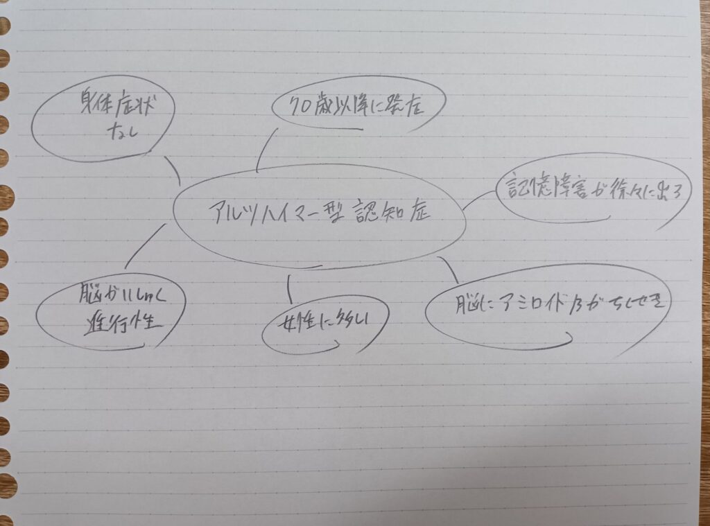 よく出るキーワード「アルツハイマー型認知症」を例に挙げて作ってみました。