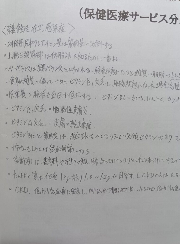 重要なキーワードは、在宅での医療管理で、人工透析、経管栄養、在宅自己注射、ネブライザー、ストーマなどの在宅医療に関するキーワードがよく出題されています。