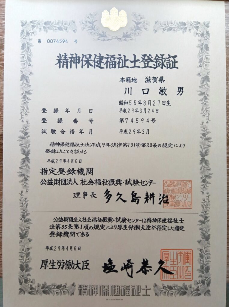 登録をして、初めて「精神保健福祉士」と名乗ることが出来ます。