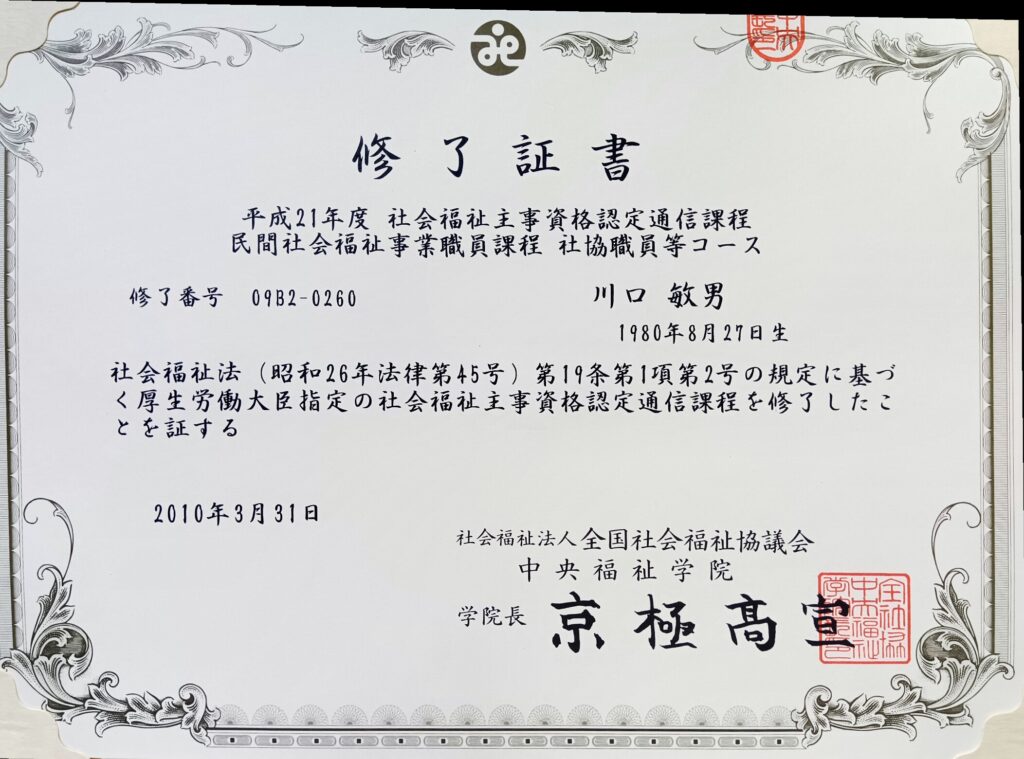 都道府県や市の福祉事務所や福祉施設などで働くことができる「任用資格」です。